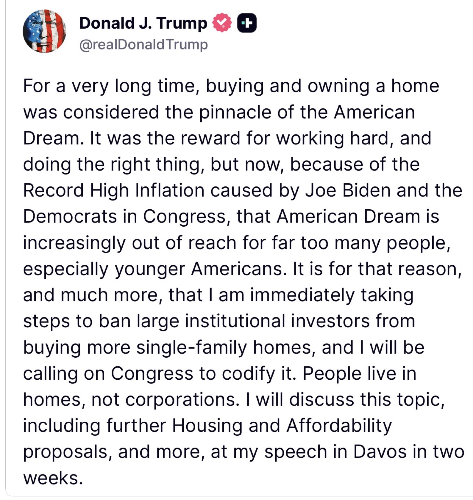President Trump focused on driving down the price of housing so every American has opportunity to live in the American Dream